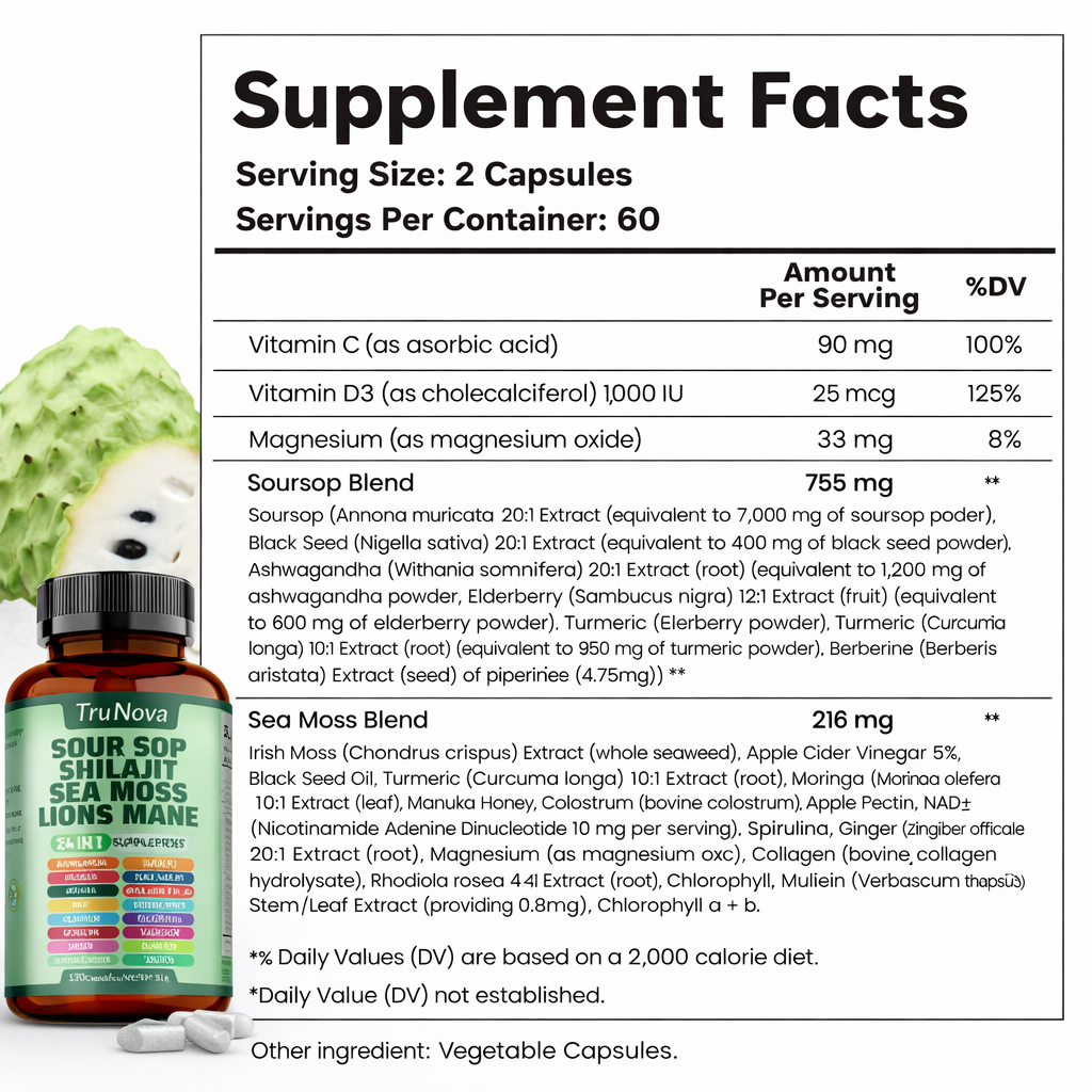 Most supplements only target one area, but your body is a complex system. By combining 24 potent botanicals like Soursop and Sea Moss, we address immunity, energy, and focus simultaneously. It is the ultimate 'cabinet killer,' replacing dozens of messy bottles with one powerful, streamlined daily ritual.